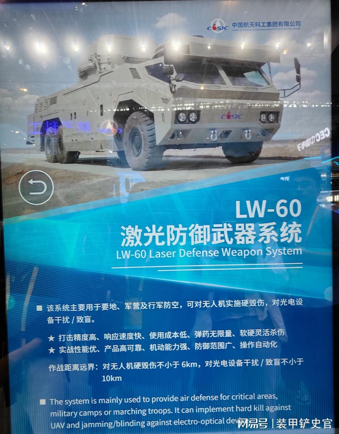 ■2024年珠海航展上的LW-60激光防御武器系统展板说明。
